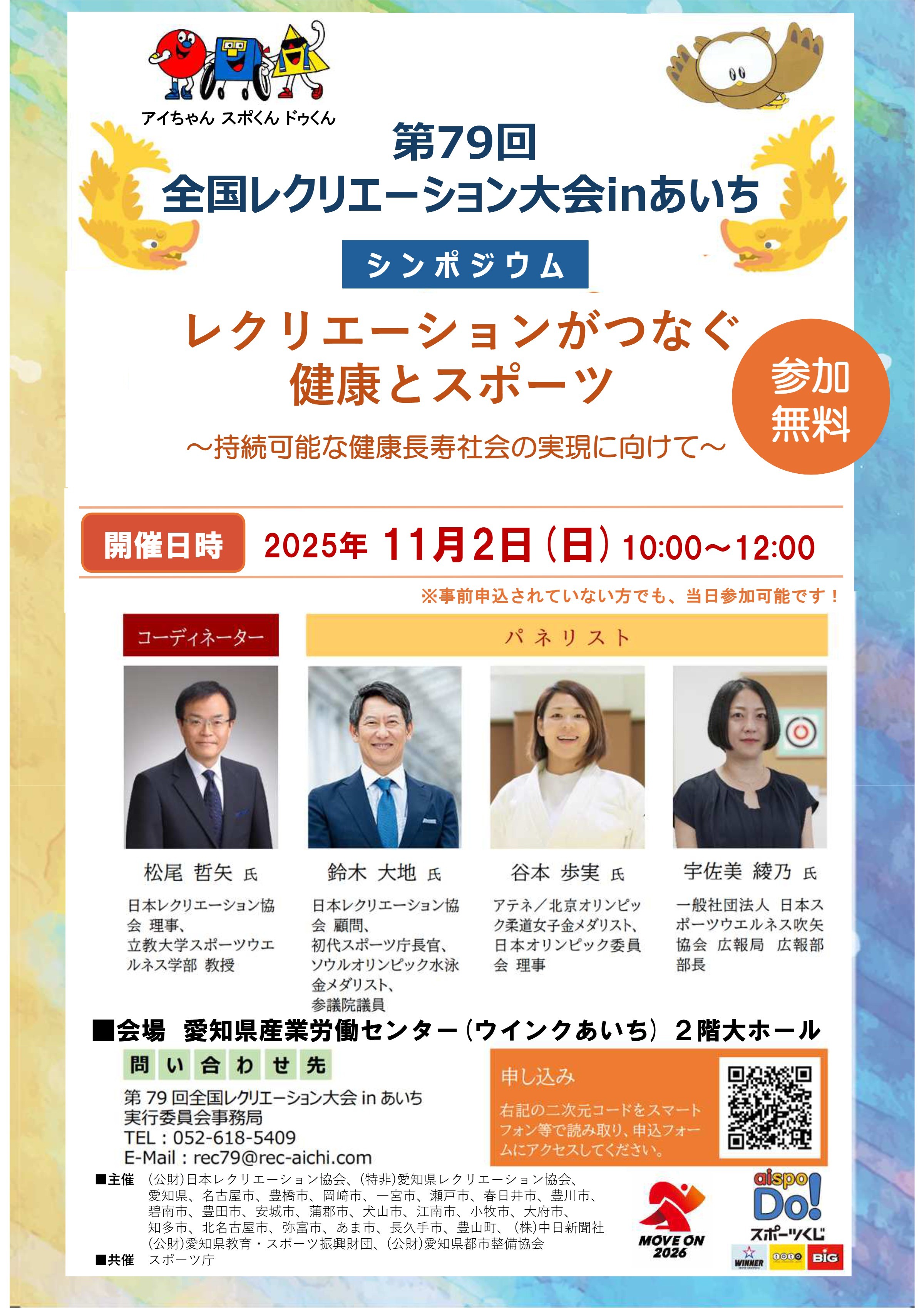 第79回全国レクリエーション大会inあいち「シンポジウム」無料で参加できます