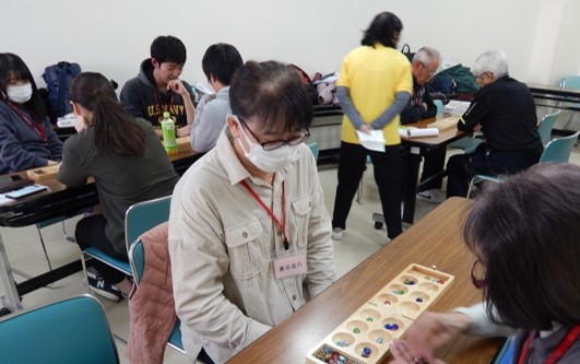 2019年12月08日 マンカラ教室 第4回 マンカラ普及員養成講習会 「マンカラ普及員」資格にて、「元気アップ・リーダー」に認定。 講習会当日は、参加者は相手を変え対戦しながら、石の動かし方や勝敗方法を学びました。皆様、楽しい半日を過ごしていただけたようです。 マンカラは、(公財)日本レクリエーション協会の「元気アップ・プログラム(誰もが楽しく夢中になり、心も体も元気になるプログラム)」4種目のうちの1種目に選定されています。マンカラ普及員=元気アップ・リーダーとしてもご活躍いただけます