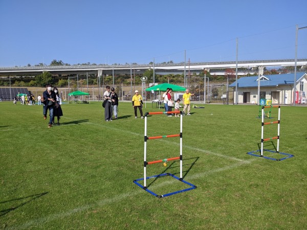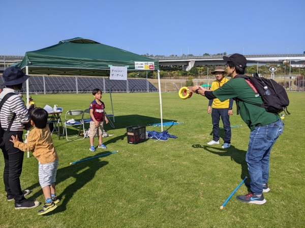 2023年11月03日 スポレクEXPO2023 モリコロパーク 11月3日、愛知県長久手市にあるモリコロパーク(ジブリパーク)で、スポレクEXPO2023を開催しました。親子連れ、友達同士と様々な方が、ニュースポーツを愉しみました。初心者でも遊び感覚で行うことができ、年齢や能力に合わせてルールを柔軟にできるので、「これはおもしろくて、はまってしまう」、「初めてでも気軽に愉しめます」と体験した方は感想を聞かせてくれました。
