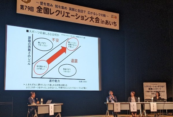 名古屋駅前のウインクあいちでは、研究フォーラムとシンポジウムが開催されました。37のセッションと1つのシンポジウムのもとに、延べ1,000人を超えるレクリエーション愛好者が学び合いました。