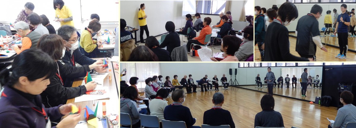 午前は、日本福祉大学 社会福祉総合研修センターの荒深氏よる、頭と体を同時に使うコーディネーション運動の講義と実技。介護予防に効果的な脳トレのクイズやラダー運動を体験しながら、みなが元気で笑顔になれる方法を習得しました。