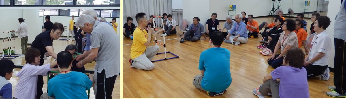 2019年6月30日 元気アップリーダー ラダーゲッター 教室 ラダーゲッター普及員養成講習会 愛知県スポーツ会館 講習会は、足踏みゲーム(アイスブレーキング)から始まりました。 皆で、用具の組立て、投げ方を学んだ後、スピードラダー・ラダーゲッター対戦を楽しみました。 ラダーゲッター地区大会を控え、活気に満ちたよい講習会になったと思います。 元気アップリーダーとは 元気アップ・プログラムを多くの人に楽しんでもらうためのリーダー的存在です。 たくさんの人を集めて運動を推進するやりがいを感じることができます。 同じ楽しみを共有できる仲間を増やしましょう。